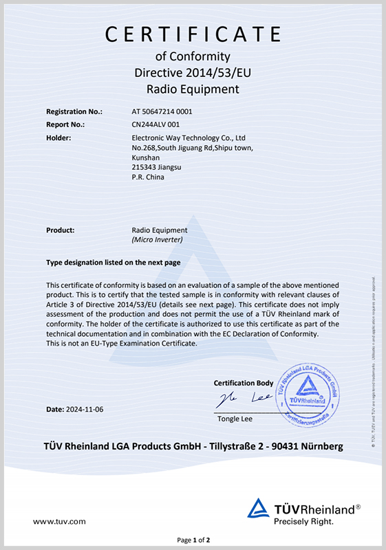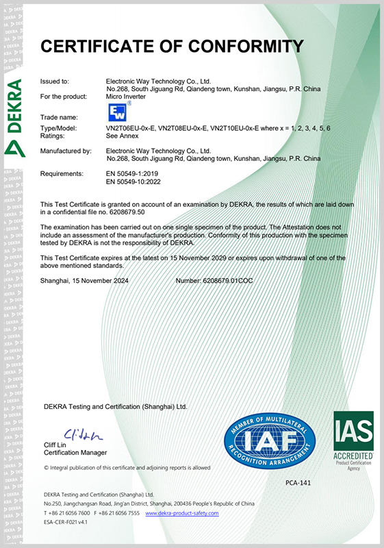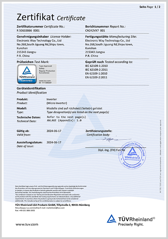 At present, most of our products have obtained international and domestic authoritative certificates such as CE, GS, UL, CCC, etc. Our excellent quality has won the recognition of the global market, and our ancillary products are sold well in Europe, America, Southeast Asia, the Middle East and other countries and regions, which show the style of China's new energy enterprises in the international arena.